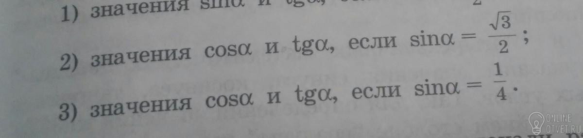 Общие замечания:а) (sinα)∧2+(cosα)∧2=1. Отсюда: cosα=√(1-(sinα)∧2). б) tgα=sinα/cosα=sinα/(1-(sinα)∧2).