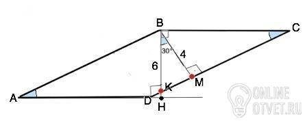 Высота ВН=6 см проведена к АD , высота ВМ=4 см проведена к DC.