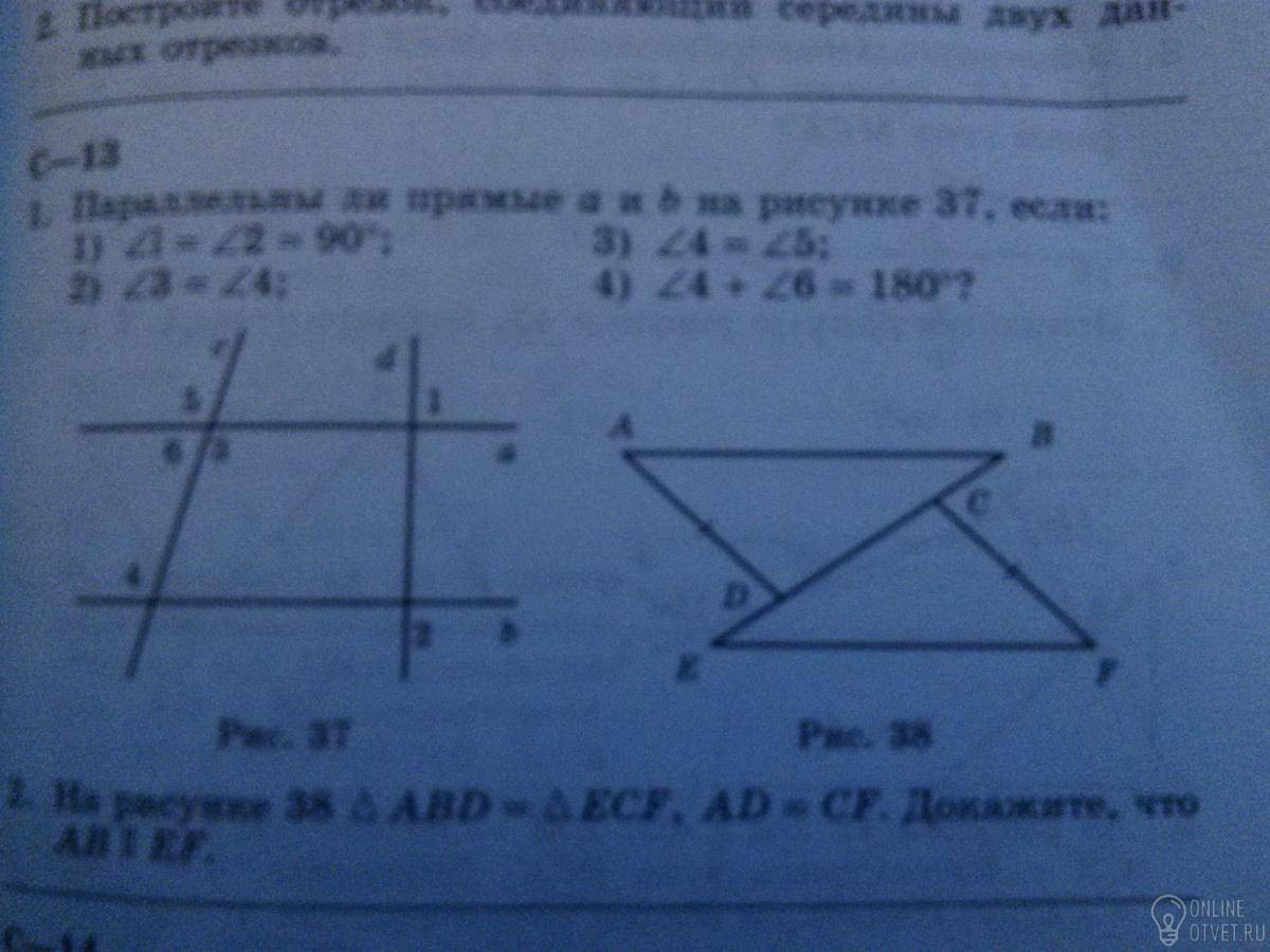 ΔABD=ΔECF , AD=CF поэтому ∠В=∠Е, т.к. в равных треугольниках против равных сторон лежат равные углы, а углы ∠В и ∠Е внутренние накрест лежащие при прямых АВ и ЕF и секущей ВЕ поэтому эти прямые АВ и ЕF параллельны. ч.т.д.