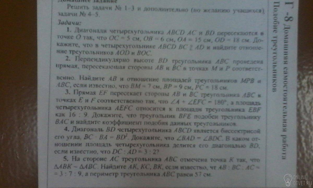 OA/OC =OD/OB || 15/5 =18/6 =3 =k_ коэффициент подобия ||.
