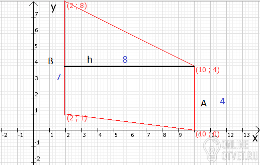Найдите площадь трапеции вершины которой имеют координаты (2.1) (10.0) (10.4) (2.8)