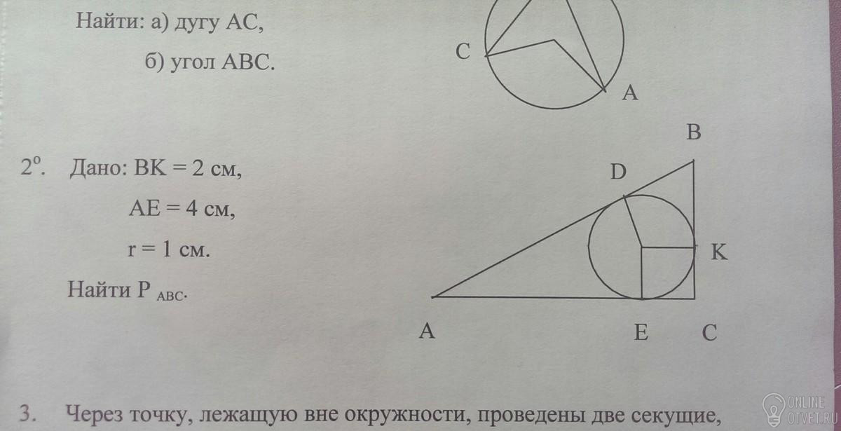 ВС=ВК+r=2+1=3 см;