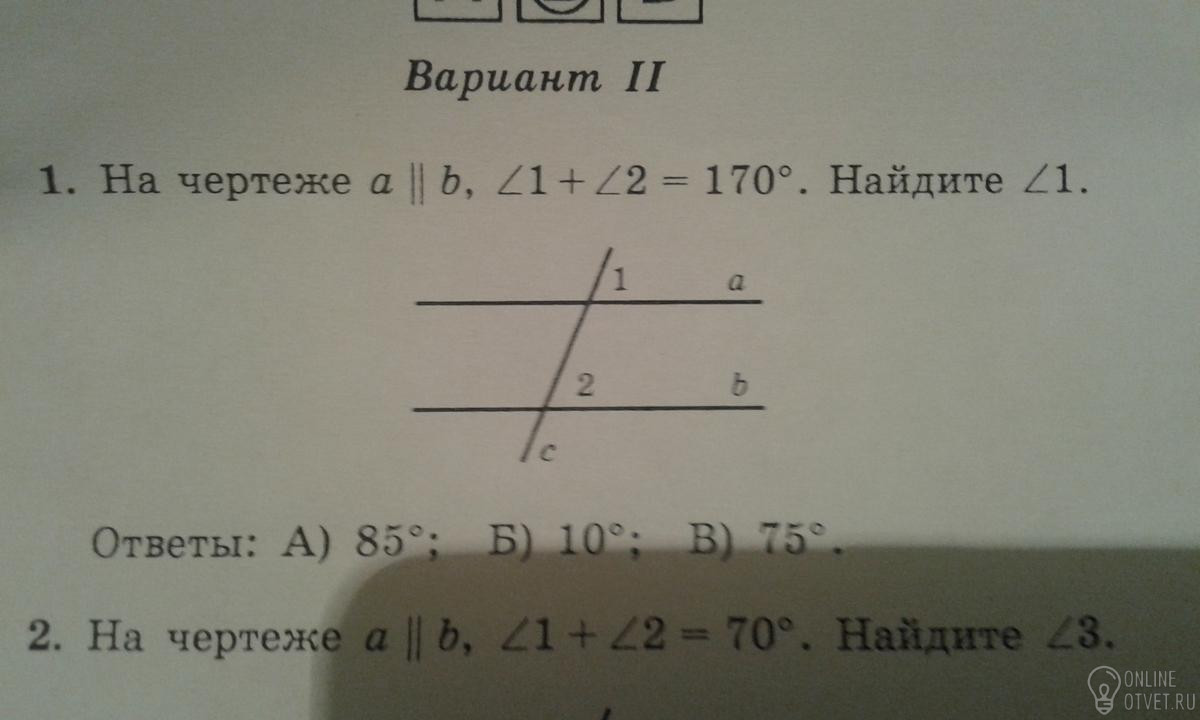 Угол 1 и угол 2 соответственные тоесть если прямые параллейные тотона равны следовательно 170:2=85- угол 1