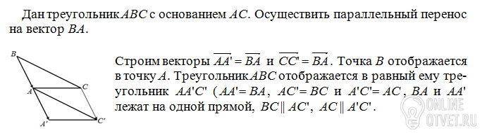 СРОЧНО!!! Дан треугольник АВС с основанием АС. Осуществить параллельный перенос на вектор ВА.