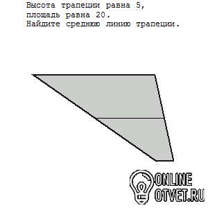 20=(a+b)*5/2, (a+b)/2=4 средняя линия трапеции