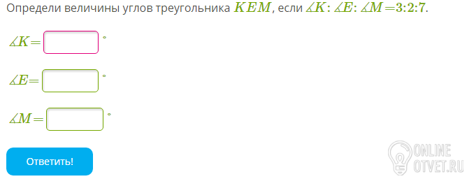 У нас получается, что угол к так относится к углу м, как 1:3.угол е так же относится 1:3 получается, треугольник равнобедренный