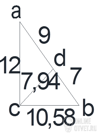 высота cd прямоугольного треуольника abc делит гипотенузу ab на части ad 9 см bd 7 см. найдите cd, ac, bc.