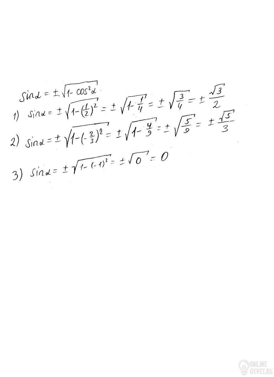 Найдите sin a если: cos a=1/2, cos a=-2/3, cos a=-1. Помогите плиз
