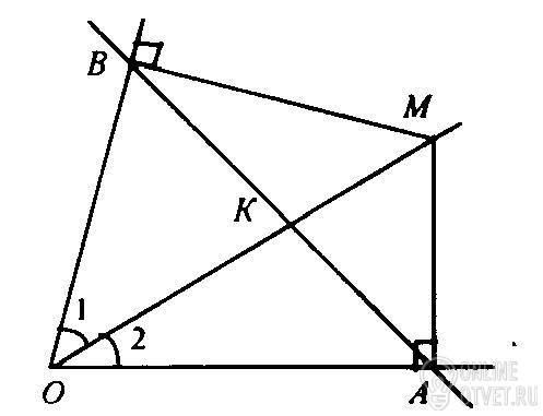 следует, что ΔАОМ=ΔОМВ (по гипотенузе и острому углу)⇒АМ=МВ