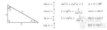 Как вычислить синус, косинус, котангенс прямого угла в прямоугольном треугольке?
