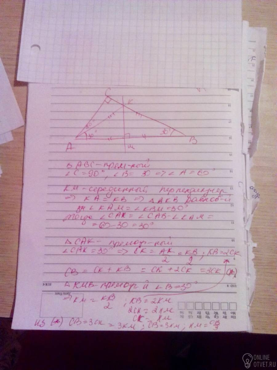 В треугольнике авс угол с равен 90 угол В равен 30 серединный перпендикуляр пересекает ВА в точке М и ВС в точке К .докажите что МК 1/3 ВС