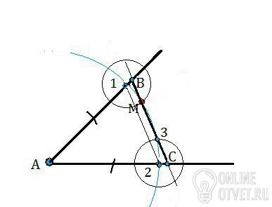 Во внутренней области угла с вершиной А взята точка М. Через точку М проведите прямую так, чтобы она пересекала стороны угла в точках В и С и АВС оказался равнобедренным с основанием ВС.