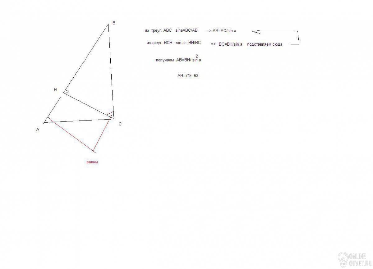 В треугольнике АВС угол С равен 90,СН-высота,ВН=7,sinА=1\3.Найдите АВ