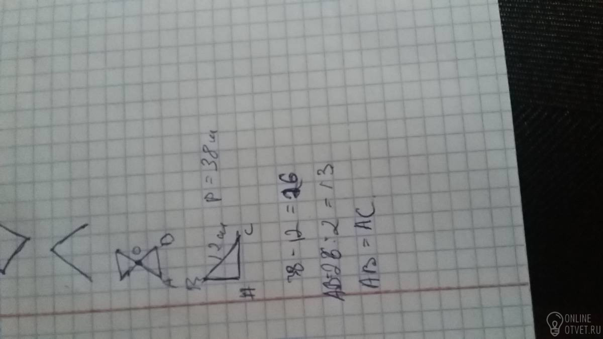 2) Основание равнобедренного треугольника если периметр равен 38 см а боковая сторона 12 см .