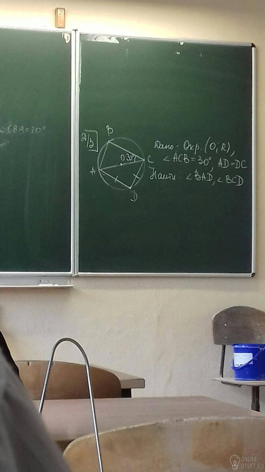 Углы СВД и СДА равны по 90°, как вписанные углы, опирающиеся на диаметр. Углы С и А в треугольнике СДА равны по 90:2=45°; Угол ВСД равен 30+45=75°; Угол ВАД равен 180-75=105° (сумма противоположных углов во вписаном четырёхугольнике равна 180°).