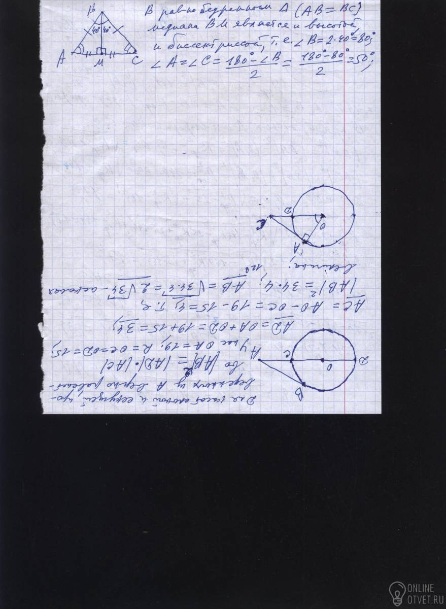 В равнобедренном треугольнике АВС проведена медиана ВМ к его основанию АС угол МВС =40 градусов.Найдите углы треугольника АВС