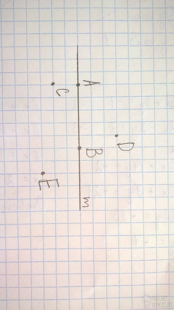 Проведите прямую, обозначьте ее буквой М. отметьте точки A и B лежащие на этой прямой и точки C, D, E,не лежащие на ней