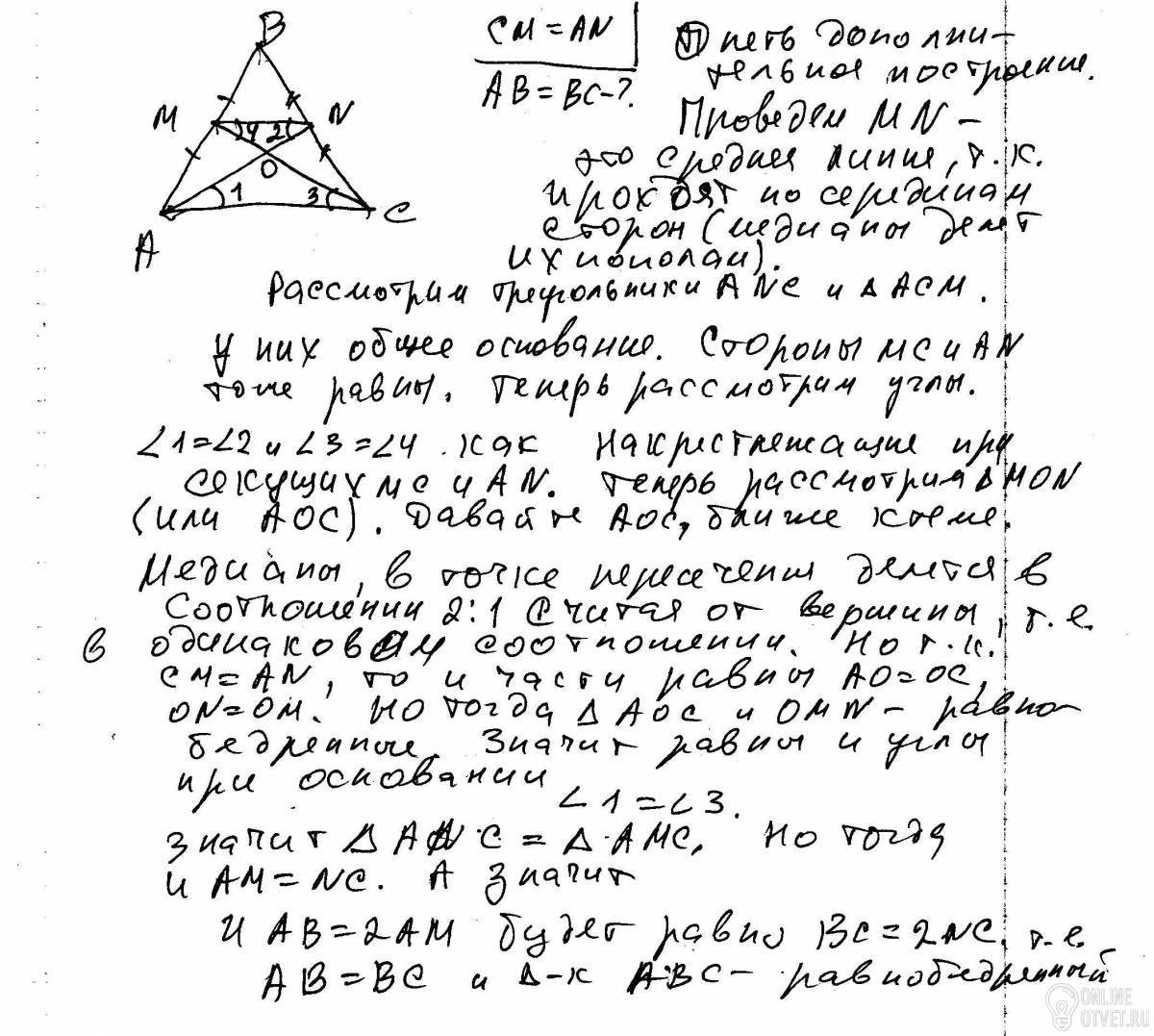 Докажите, что треугольник равнобедренный.