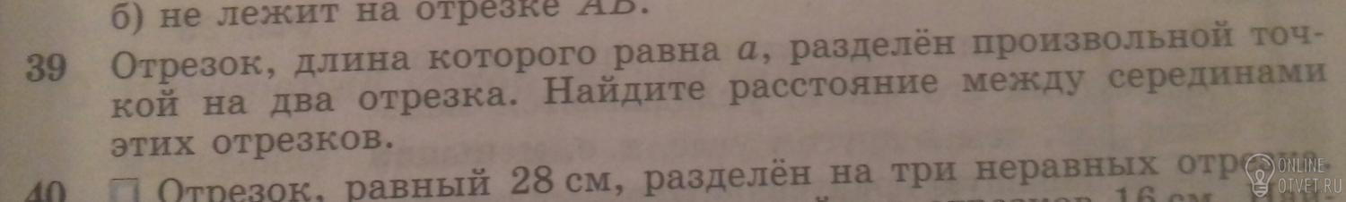 Ответ а/2. Главный отрезок состоит из двух новых, а отрезок, соединяющий середины, будет состоять из половин этих отрезков.