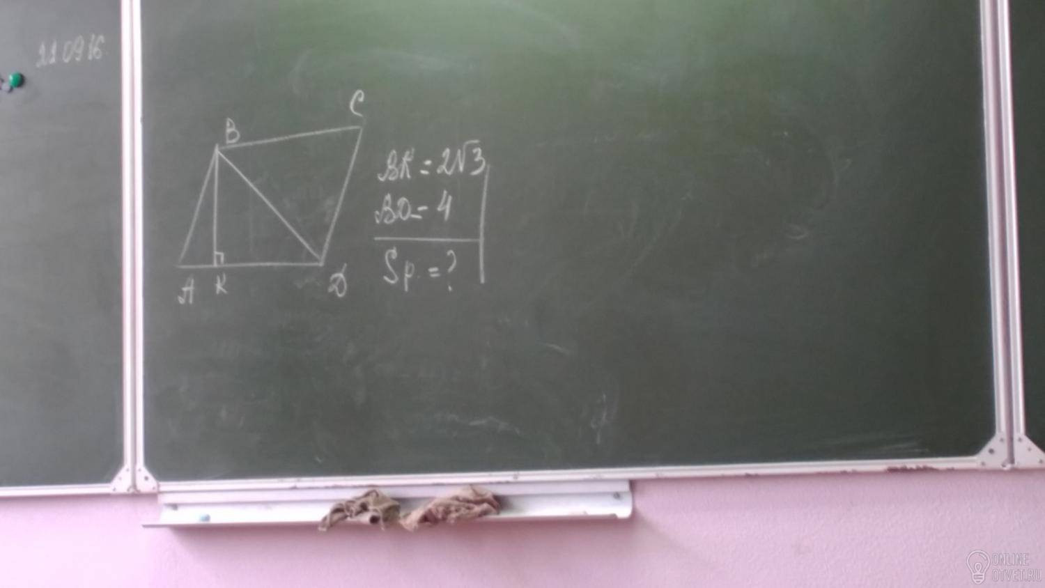 KD=√(16-12)=2, AB=x, в треугольнике АВК х²=(х-2)²+(2√3)²