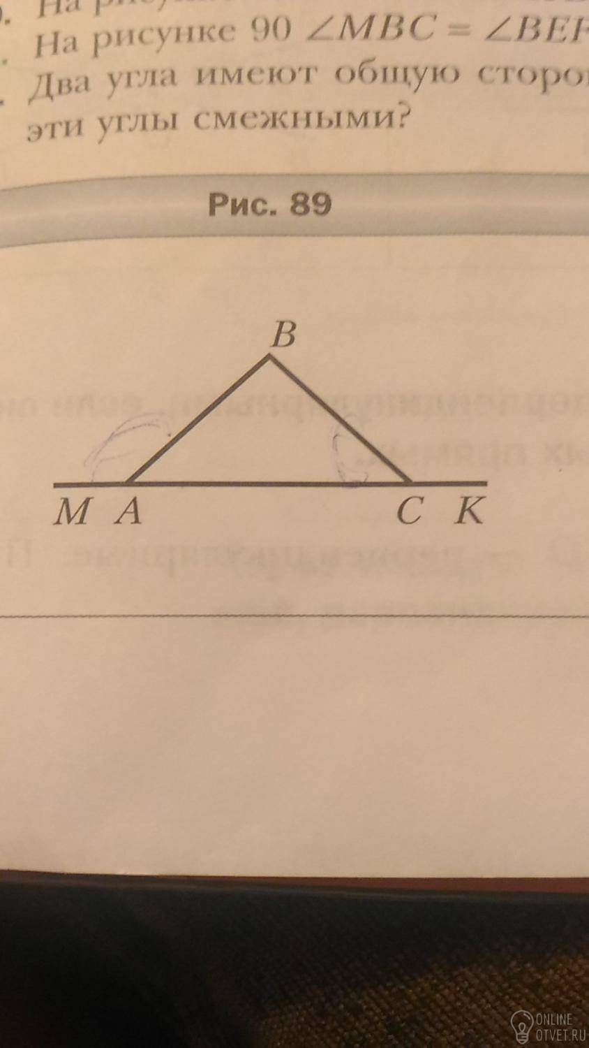 Т. К. Треугольник АВС равнобедренный, то углы при основании равны, следовательно, и смежные с ними углы равны между собой. Ч.т.д. Угол ВАС=ВСА, значит МАВ=ВСК. ВАС смежный с МАВ, ВСА смежный с ВСК