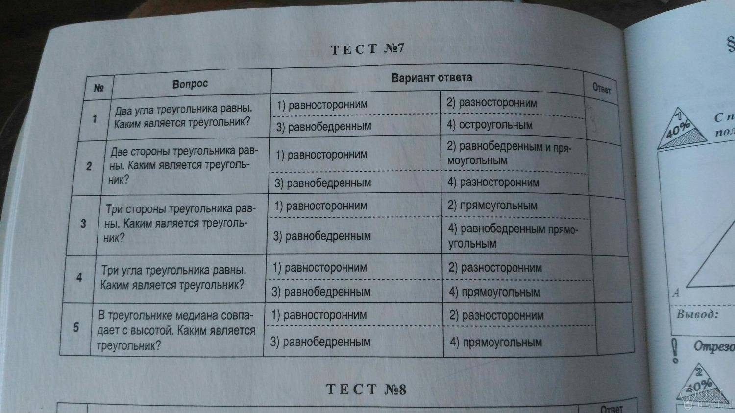 1-3(равнобедренный) 2-3(равнобедренный) 3-1(равносторонний) 4-1(равносторонний) 5-3(равнобедренный)