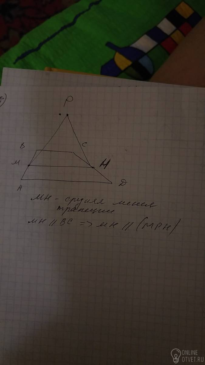 Точки M и H - середины боковых сторон AB и CD трапеции ABCD. Точка P не лежит в плоскости этой трапеции. Докажите, что прямая BC параллельна плоскости MPH.