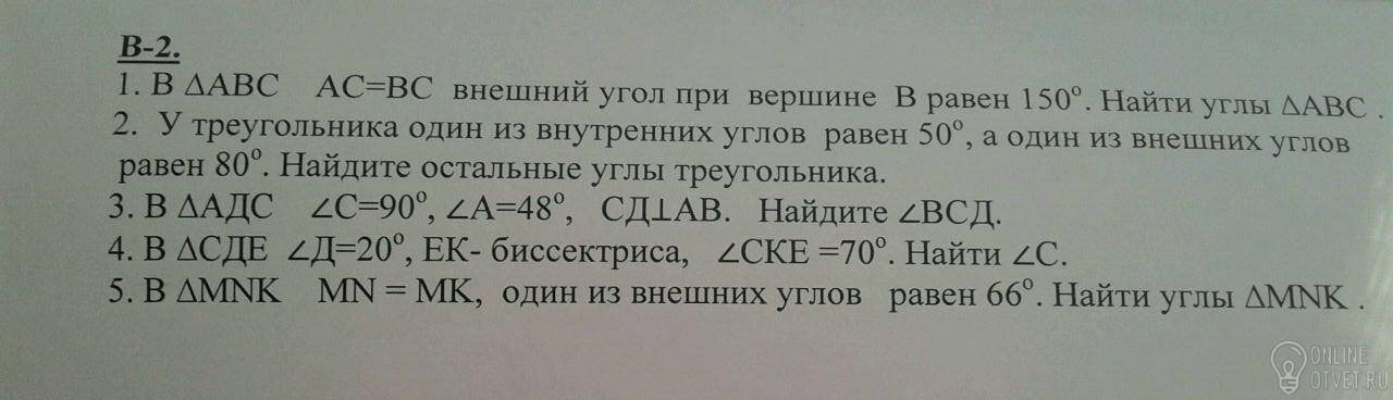 угол В равен 180°-150°=30°( по свойству смежных углов)