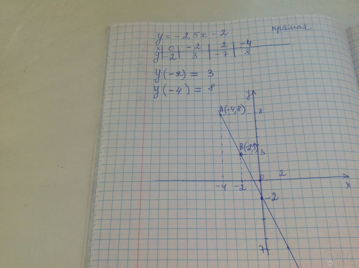 Постройте график функции y= -2,5x - 2 Определите по графику: