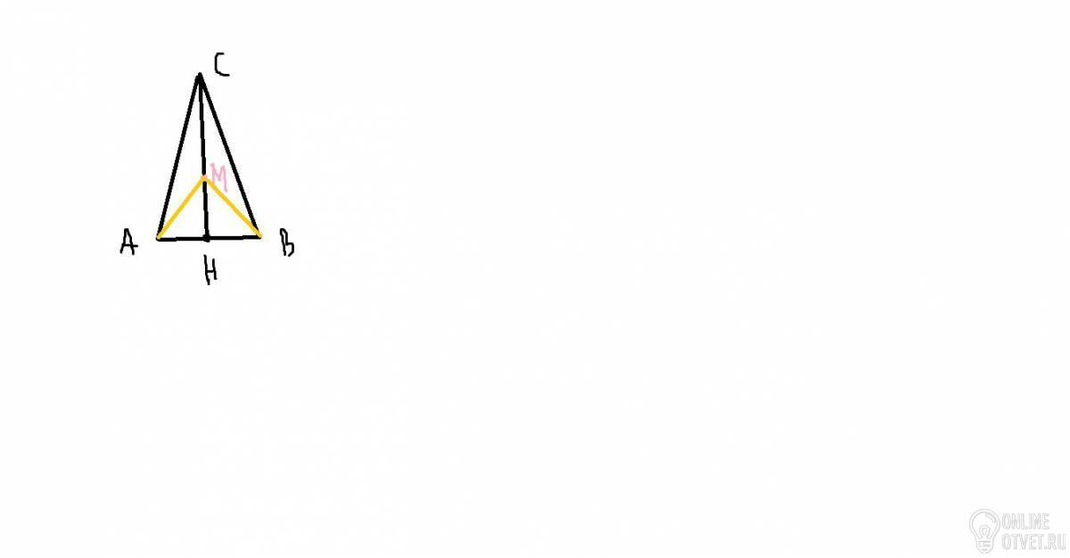 На высоте CH равнобедренного треугольника ABC с основанием AB отметили точку M. Докажите, что треугольник AMB равнобедренный. Напишите пожалуйста ДАНО: и РЕШЕНИЕ, и нужен рисунок