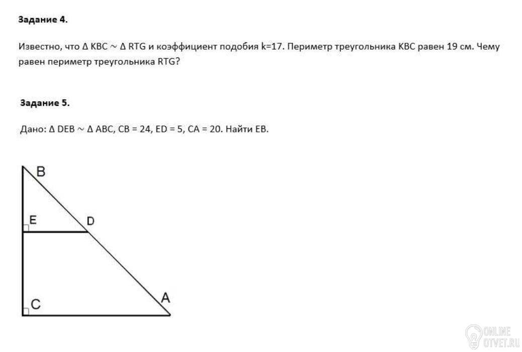 4) Так как треугольники подобны то, их периметры будут пропорциональны с коэффициентом К.