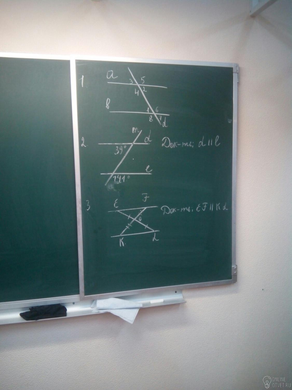 2. найдем угол смежный с углом 141 градус, он равен 39 градусам,т.к. сумма смежных углом равна 180 градусов (180-141=39)