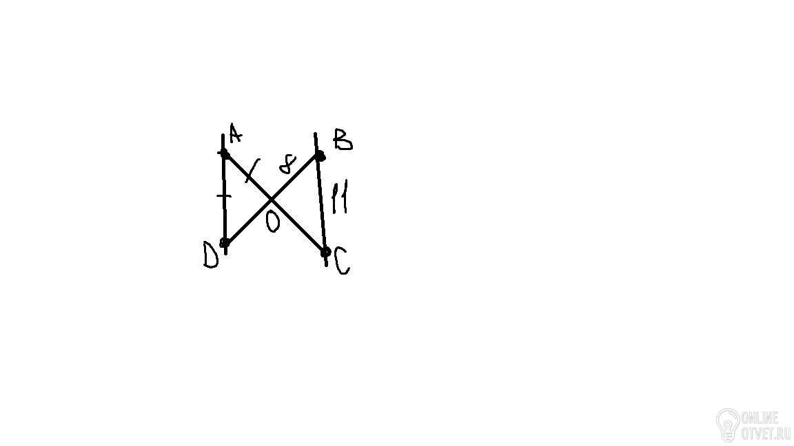 Равные отрезки AC и BD пересекаются в точке О так что AO равен AD если OB=8 cm BC= 11cm Сделайте риссунок