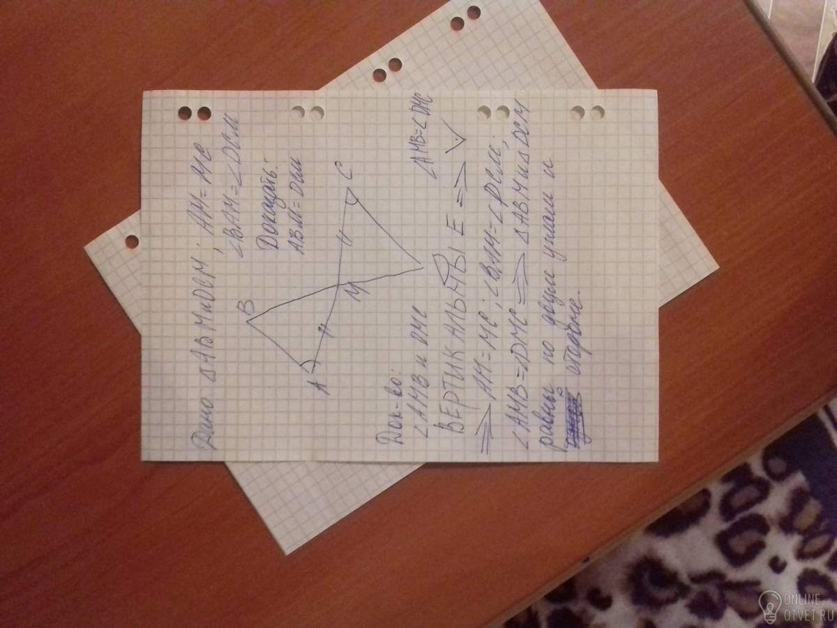 Докажите равенство треугольников ABM и CDM, если AM=CM и угол BAM=углуDCM