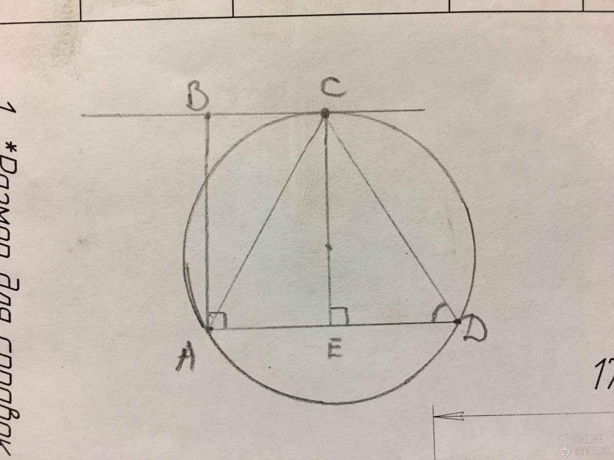 ABCD — прямоугольная трапеция с прямым углом А и меньшим основанием ВС=1. Окружность с центром в точке О касается прямой ВС в точке С и проходит через точки А и D, угол сда=60° найдите длину сд