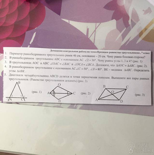 следовательно, треугольники ВОА и COD равны по 1 признаку равенства треугольников