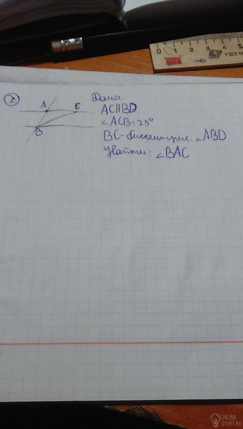 <АСВ=<ВСД , поскольку бисектриса делит угол, то 25°+25°=50° , поэтому АВД равен 50°, <ВАС=360-(50+50)=360-100=260/2=130