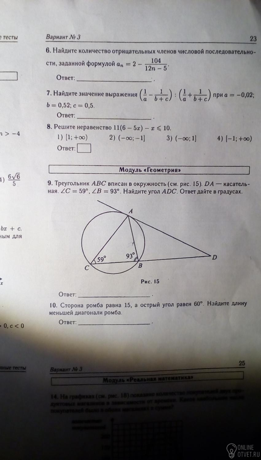 угол В = 93, то дополнительный к нему угол АВД = 180 - 93 = 87 градусов.Угол ДАВ, равен углу С, значит ДАВ = 59.Если это верно, то угол АДС будет 180 - ДАВ - АВД = 180 - 59 - 87 = 34 градуса.