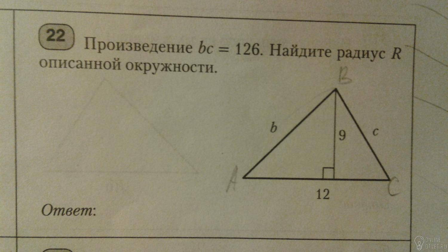 Сторона треугольника равна 12, высота, проведенная к этой стороне, равна 9, а произведение двух других сторон равно 126. Найти радиус описанной окружности.