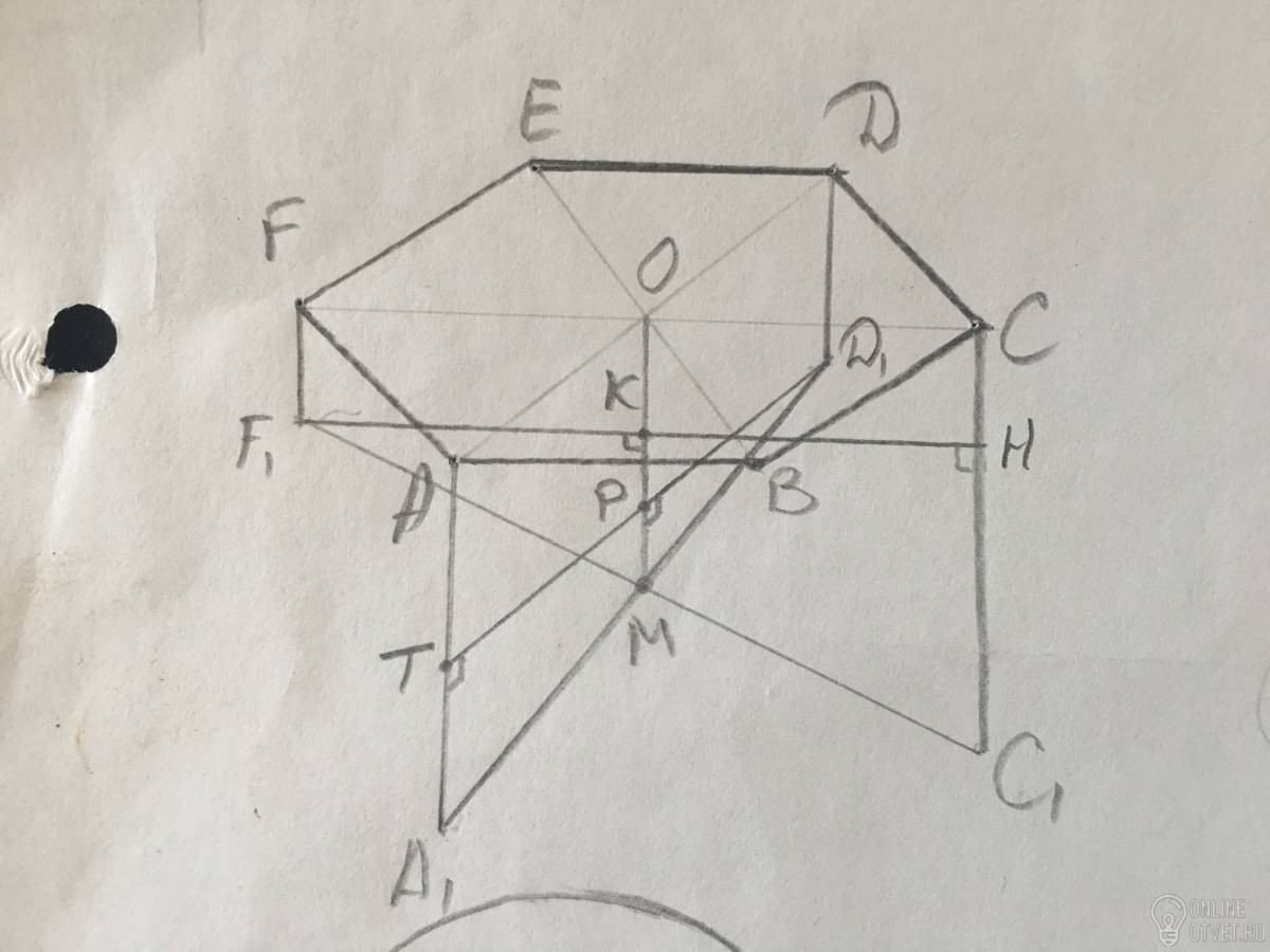 Проведем F1H⊥CC1. F1H║FC, OM⊥ABC ⇒ KM⊥F1H. FO=CO ⇒ F1K=HK, значит в тр-ке F1HC1 KM - средняя линия.