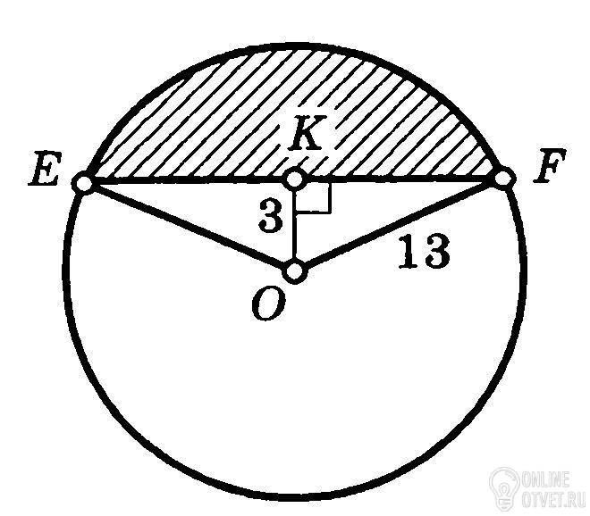S=1/2R²(α-sinα)=1/2*13²(arccos3/13-sin(arccos3/13))=1/2*169(arccos3/13-4√10/13)=84,5arccos3/13-26√10