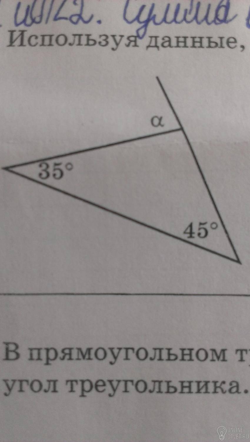 а угол А(альфа) смежный угол с тем что мы нашли. Тут опять сумма смежных углов равна 180.