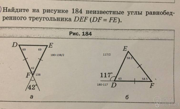138/2= 69 это угол D и F