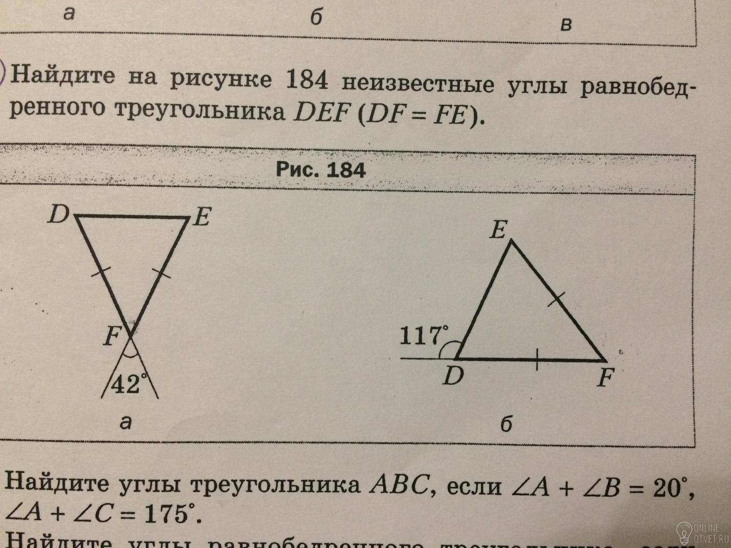 117/2=58.5 это угол E и F