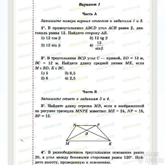 ВК=ВС/2=6; ВМ=ВD/2=6,5