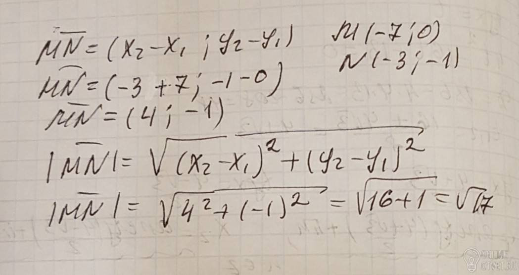Знайти координати и довжину вектора MN , якщо M(-7;0) N (-3;-1;)