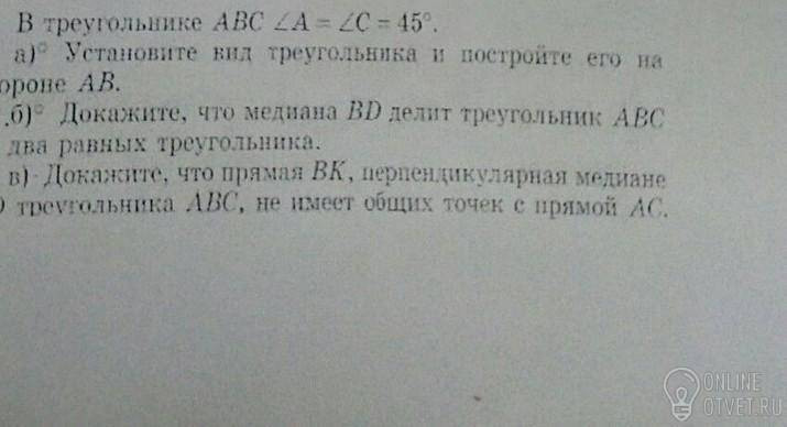 в) Тк BK перпендикулярна медиане , это значит она образует с ней прямой угол , из этого следует , что она никак не может иметь с AC общих точек пересечения
