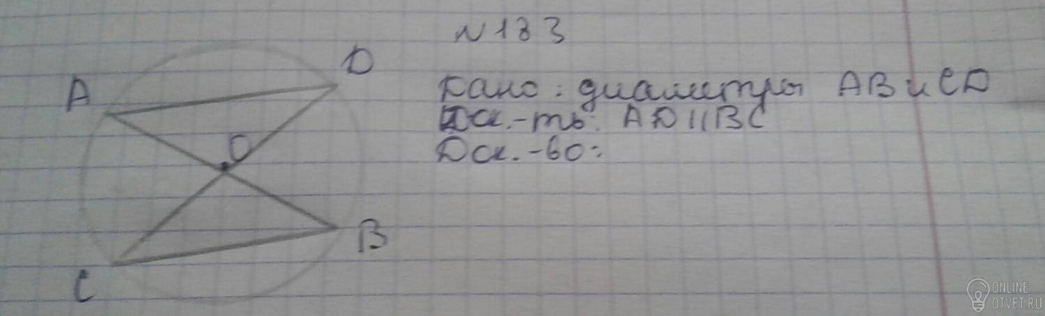 4) Допустим что АД|| ВС,тогда при АВ секущей накрест лежащие углы равны т.е угол СВО=углу ОАД. А они у нас равны (см п.3) Значит АД||ВС