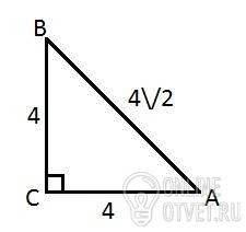 1) Находим гипотенузу: АВ=АС√2=4√2.