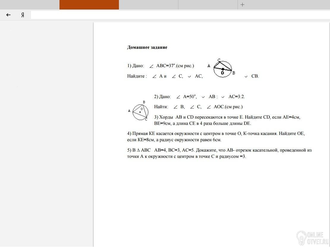 1)УголАСВ равен 90° так как опирается на диаметр. Угол ВАС равен 180-(90+37)=73°.